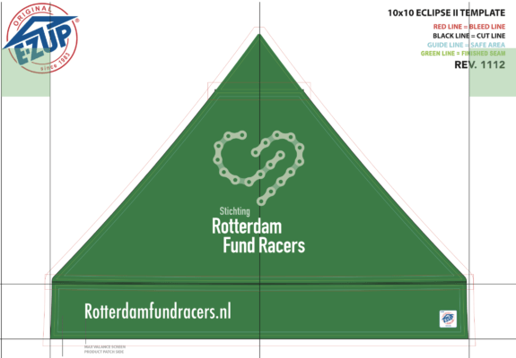 De bedrukte partytenten hebben verschillende afmetingen waarvan de Eclipse 3 x 3 meter de meest verkochte shelter is. 3 x 4,5 meter geeft je iets meer ruimte maar je houd nog steeds maar 4 poten. Als je naar 3 x 6 meter gaat heb je 6 poten.