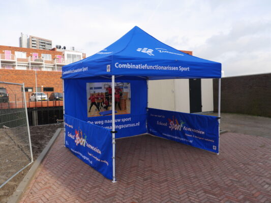De bedrukte partytenten die wij leveren zijn vaak van staal, maar sommige kunnen ook in aluminium besteld worden (tegen meerprijs). We geven 7 jaar garantie op deze frames dus u kunt ervan uitgaan dat deze van hoge kwaliteit zijn. De bedrukte partytenten zijn inzetbaar op evenementen binnen of buiten. Binnen zorgt het ervoor dat je goed opvalt, net als buiten waar het je ook nog beschermd tegen regen en zon. Ook zijn de bedrukte partytenten aan de zijkanten dicht te maken. We hebben zijwanden met ritsen of ramen. Wij hebben overal wel een oplossing voor. Foto’s van geleverde tenten vindt je op de portfolio pagina.
