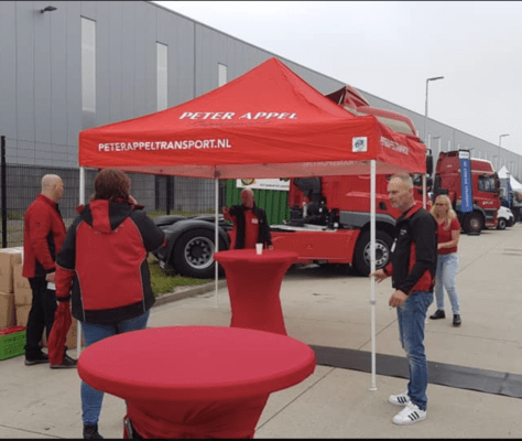 Zelfs na jaren dag in dag uit uitklappen is deze bedrukte partytent nog steeds als nieuw en representatief om mee op locatie te staan. Wij geven niet voor niets 7 jaar framegarantie.